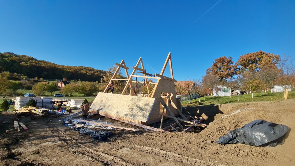 Vom reveni cu noi articole despre constructia celor doua cabane de lemn tip a frame, si cu detalii din timpul executiei.