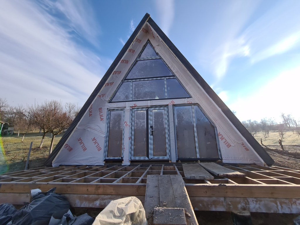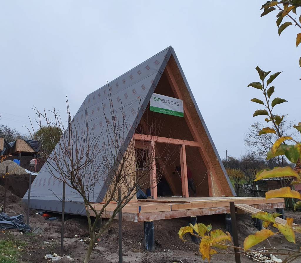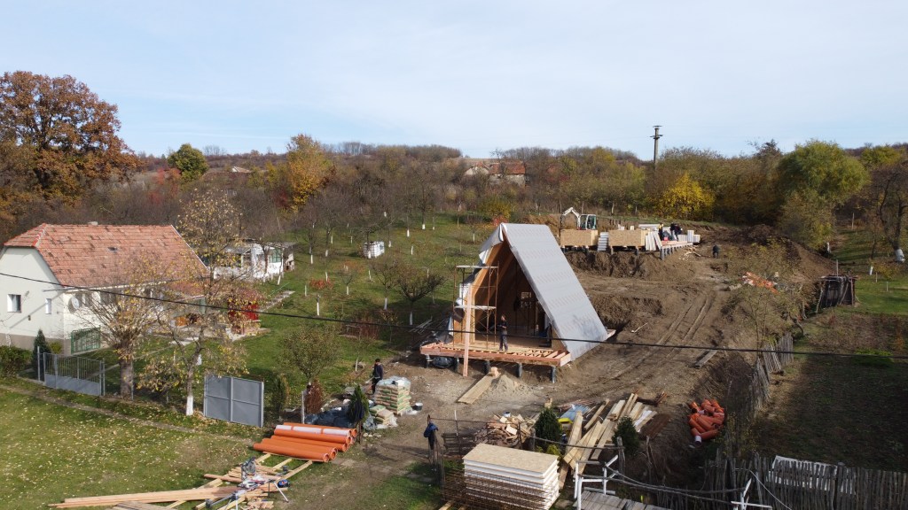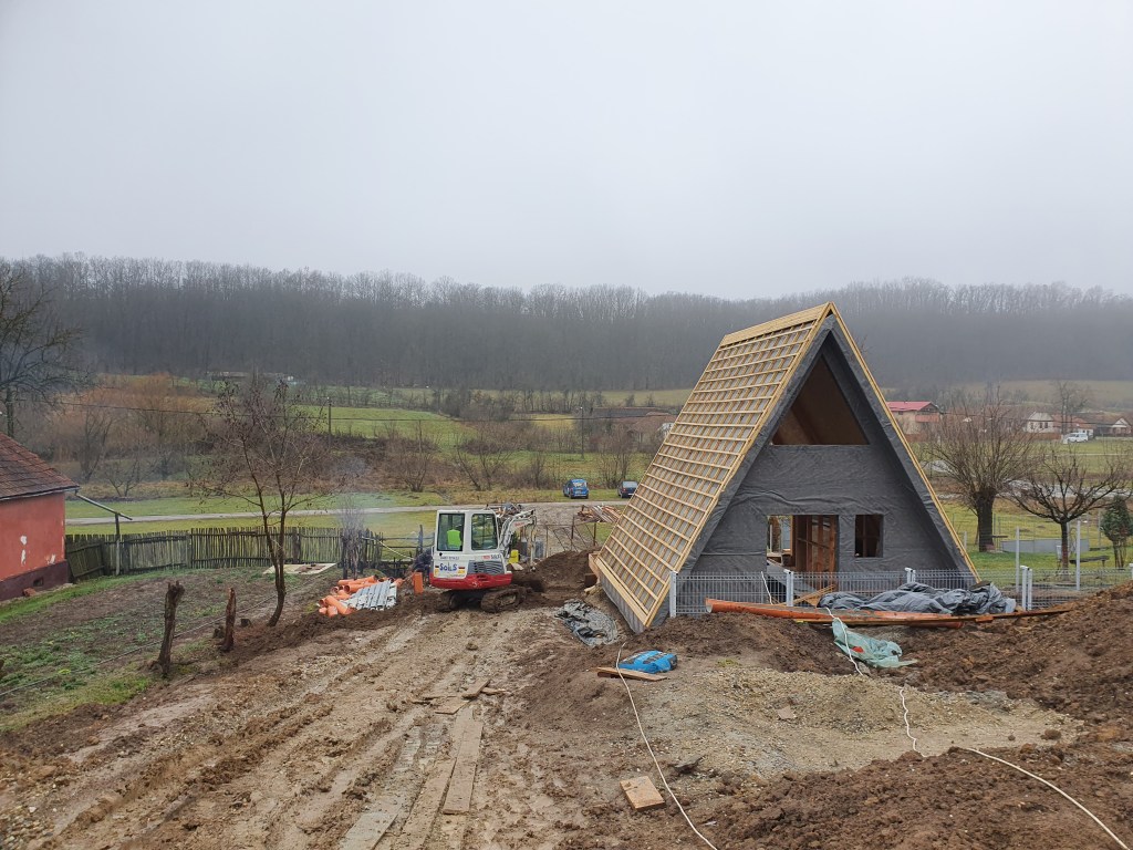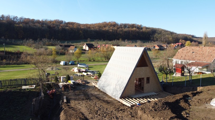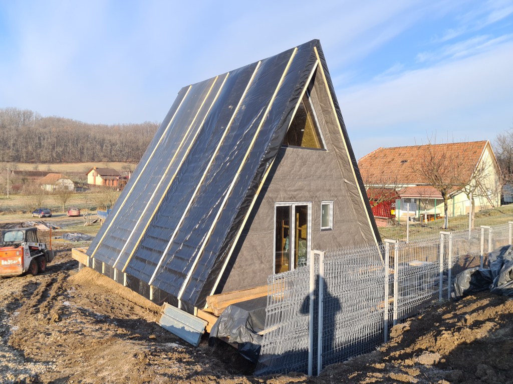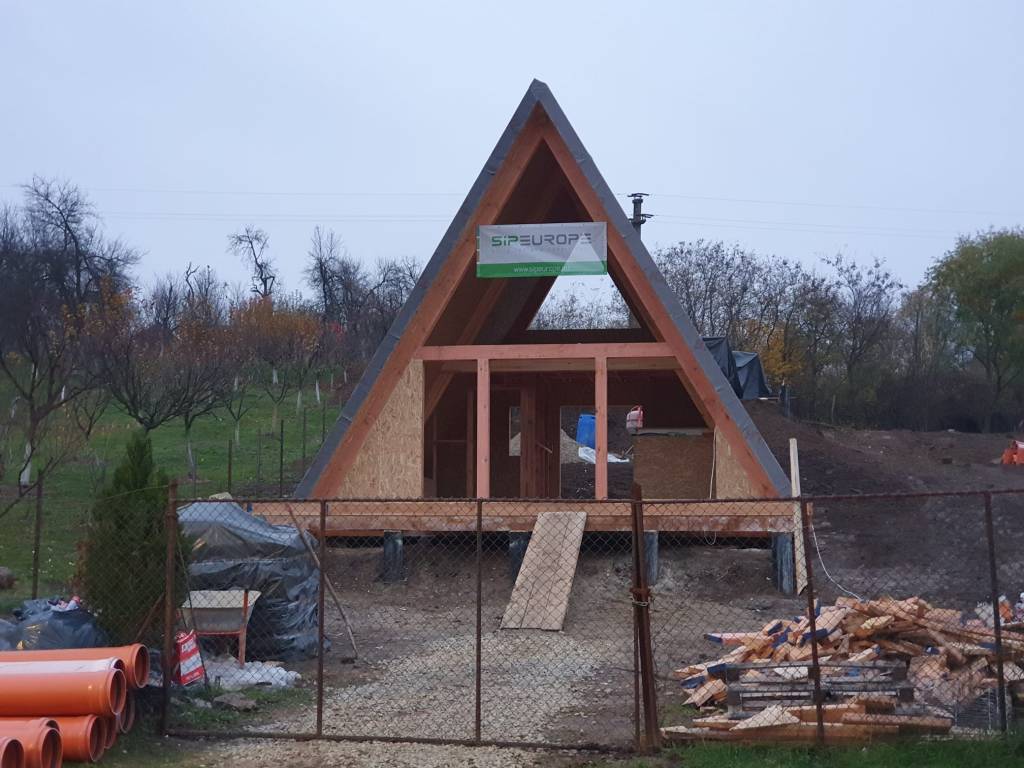 Va prezentam in imaginile urmatoare constructia la rosu a doua cabane tip A Frame in Salciua Noua, judetul Timis.